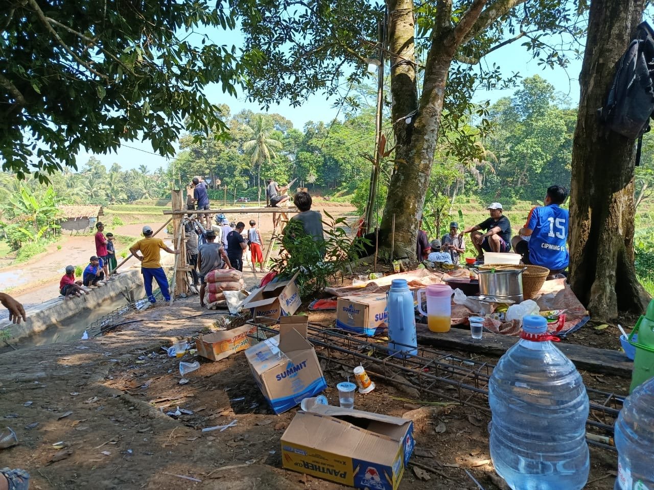 Mamun Ketua Rt 03/06 mengatakan,” Dalam hal ini kita semua berinisiatif untuk bergotong royong dengan cara suadaya dan simpatisan, adapun anggaran yang digunakan semua hasil iyuran yang dikumpulkan dari warga Kampung yang meliputi wilayah Rt 01 sampai Rt 03/06.