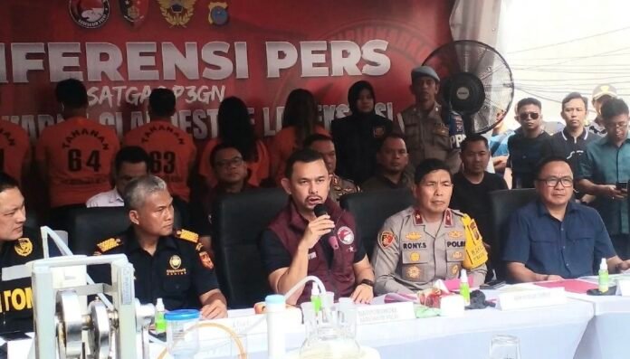 “Barang bukti yang disita antara lain alat cetak ekstasi, bahan kimia padat sebanyak 8,96 kilogram, bahan kimia cair 218,5 liter, mepherdhone serbuk 532,92 gram ekstasi 635 butir, berbagai jenis bahan kimia prekursor dan peralatan laboratorium,” ujar Direktur Tindak Pidana Narkoba Bareskrim Polri Brigjen Pol Mukti Juharsa di Medan, Kamis. (13/06/2024).
