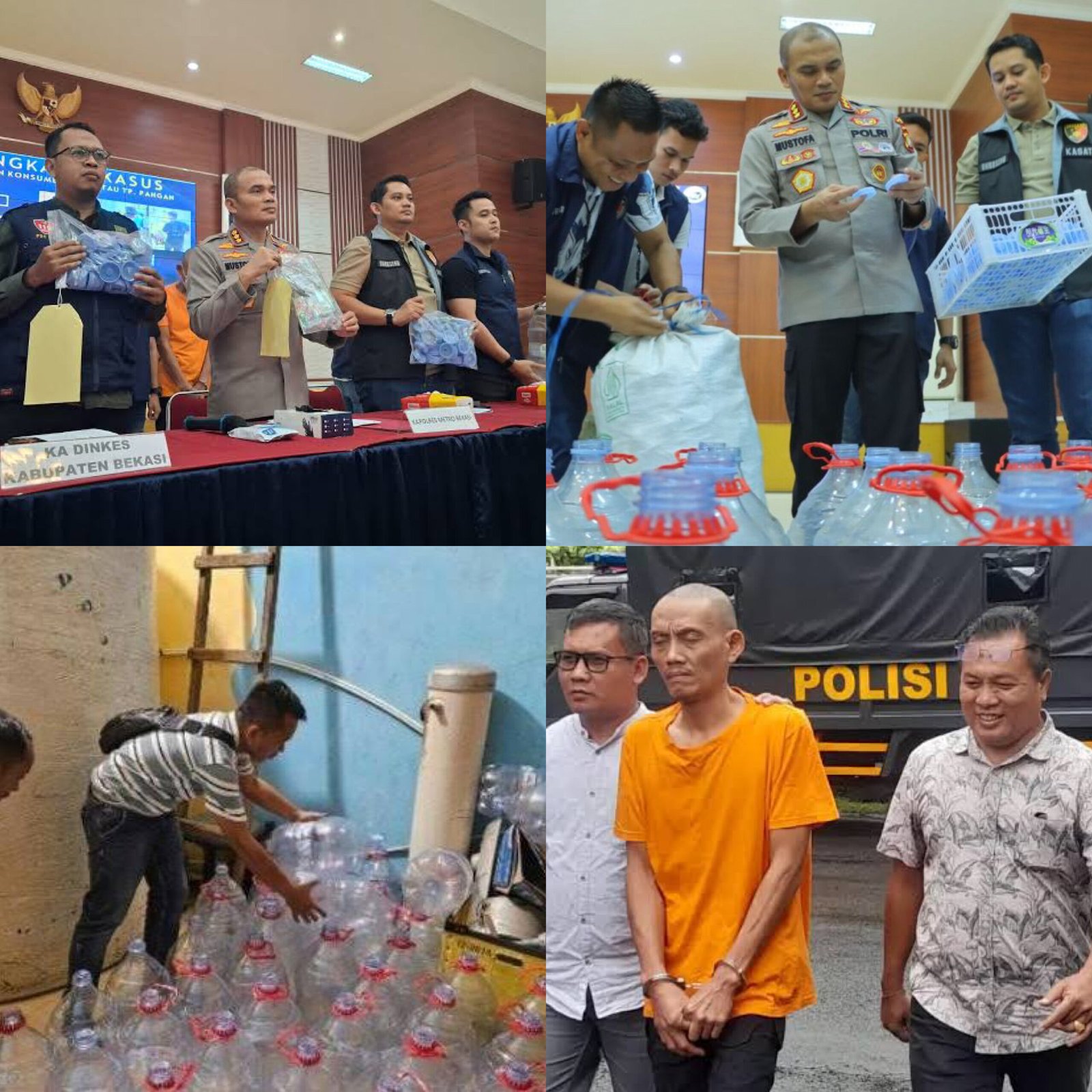 Bekasi | LintasUpdate – Polres Metro Bekasi berhasil membongkar praktik kejahatan konsumen berupa produksi air mineral palsu bermerek Le Minerale di sebuah depot air isi ulang di Kampung Burangkeng, Setu, Kabupaten Bekasi. Jumat 23 Mei 2025