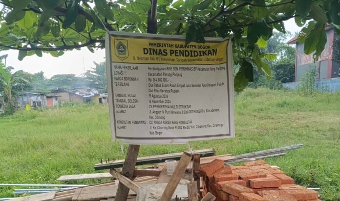 Bogor | LintasUpdate – CV.Premieka Multi Struktur ( CV.PMS ) sebagai penyedia jasa pengerjaan di percayakan kepada kepala mandor inisial D, Pembangunan RKB SDN Perumnas BP Parung Panjang,Selama pembangunan di mulai hanya sekali datang yang harus nya di mulai di bulan Agustus ternyata baru terlaksana pada bulan September.