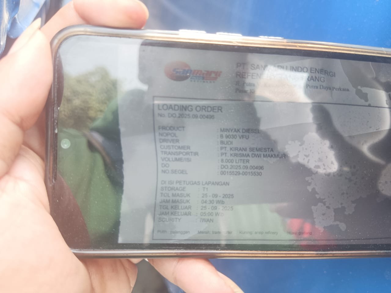 Lebih lanjut, transportir yang digunakan juga diduga tidak sesuai peruntukan. Truk tangki HSD yang seharusnya dipakai khusus untuk pengangkutan BBM jenis solar, justru dipergunakan membawa minyak diesel sebagaimana terlihat dalam foto dokumen di ponsel sopir.