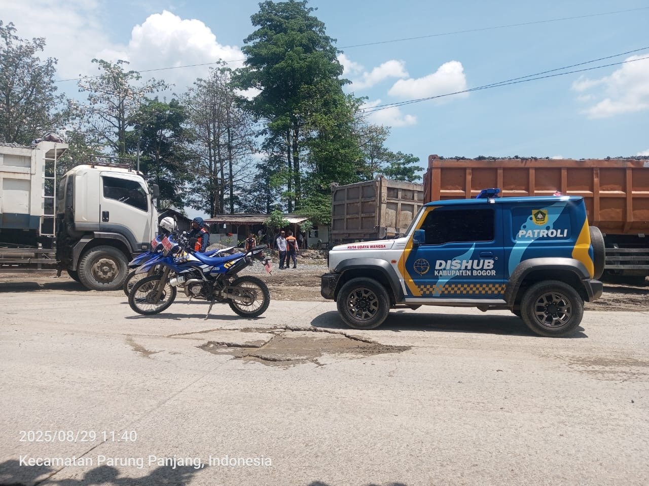 Bogor l LintasUpdate – Dinas Perhubungan (Dishub) Kabupaten Bogor melakukan penertiban kendaraan tambang di perempatan Rewod, Jalan Raya Lintas Parungpanjang, Desa Ciomas, Kecamatan Tenjo, Kabupaten Bogor, Jumat (29/8/2025).