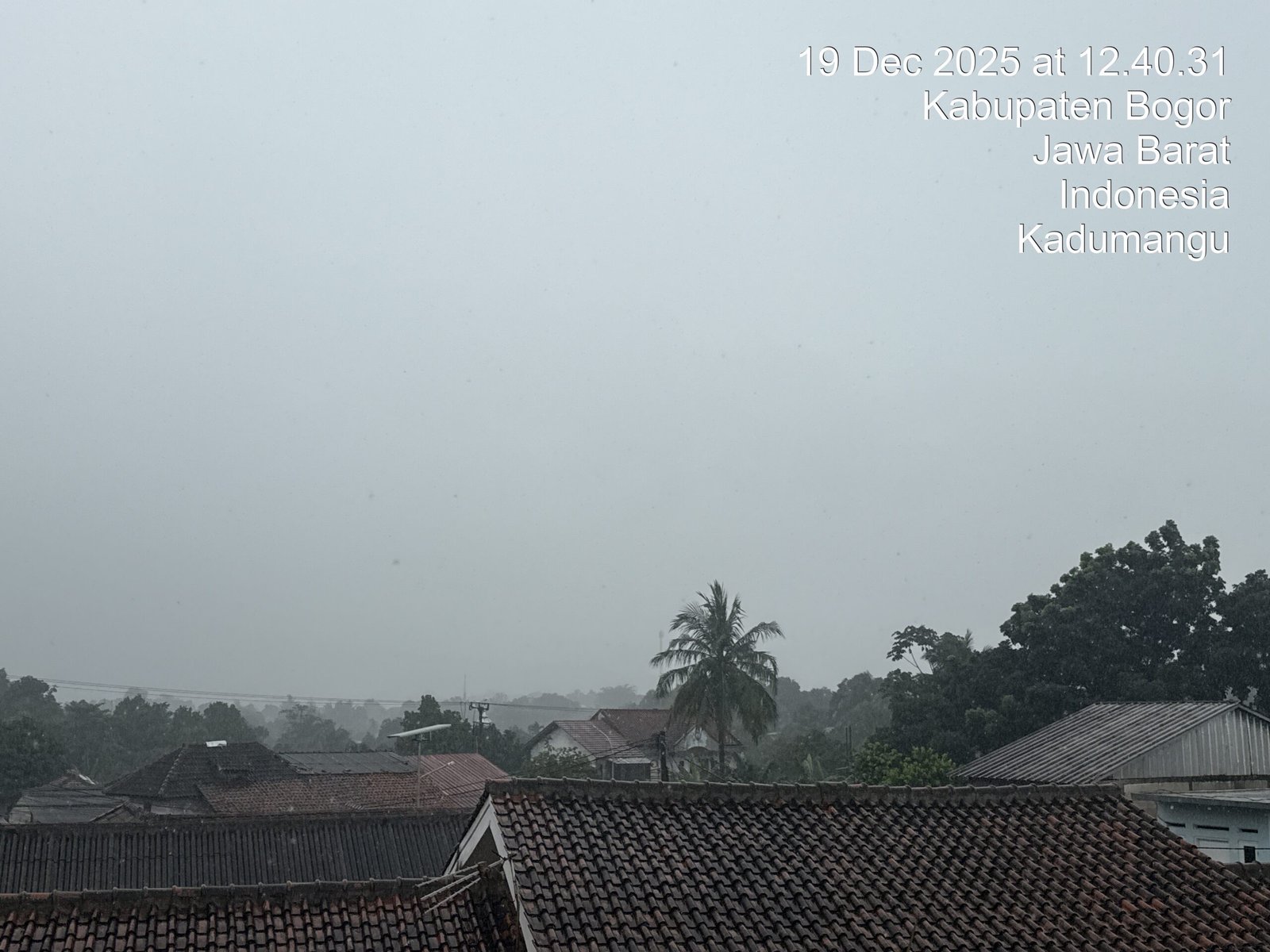 Bogor | LintasUpdate — Hujan dengan intensitas ringan hingga sedang mengguyur wilayah Kabupaten Bogor sejak siang hari, Jumat (19/12/2025). Berdasarkan pantauan di lapangan, hujan mulai turun sekitar pukul 12.40 WIB dan masih berlangsung di sejumlah wilayah permukiman, salah satunya di kawasan Kadumangu.