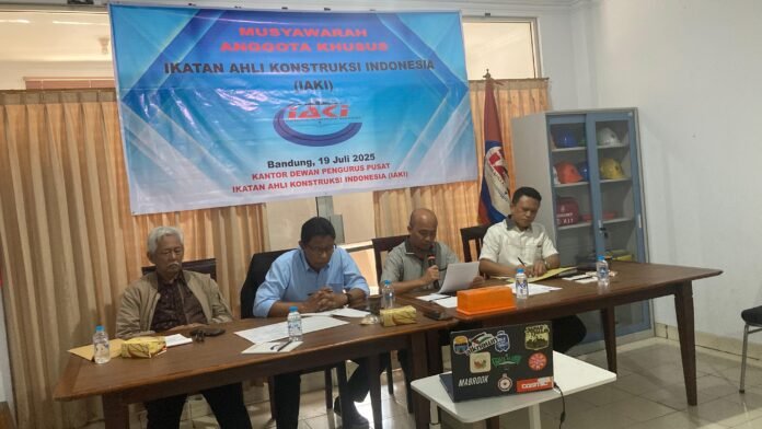 Bandung | LintasUpdate – HSB – Di sebuah ruangan sederhana namun penuh determinasi di Kantor Dewan Pengurus Pusat Ikatan Ahli Konstruksi Indonesia (IAKI), empat sosok duduk dalam formasi serius pada Musyawarah Anggota Khusus, Sabtu 19 Juli 2025. Di belakang mereka terbentang spanduk besar yang menegaskan agenda penting pembenahan internal, penyegaran kepemimpinan, dan penajaman peran organisasi di tengah dinamika dunia konstruksi yang makin kompleks.