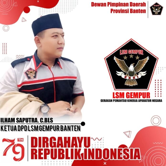 Perayaan Hari Kemerdekaan Republik Indonesia tahun 2024 ini bertema “Nusantara Baru Indonesia Maju”. Pada momen HUT RI yang ke 79 tahun ini, tokoh Lembaga Swadaya Masyarakat, Gerakan Masyarakat Pemantau Kinerja Aparatur Negara atau dikenal (LSM GEMPUR), Ketua DPD Provinsi Banten yakni ILham Saputra, C.BLS biasa dengan sapaan akrabnya Pa Put itu, menyampaikan Ucapan selamat HUT RI yang ke 79 tahun untuk Indonesia Tercinta. Sebagai anak bangsa, tentu merasa bangga terhadap Indonesia.
