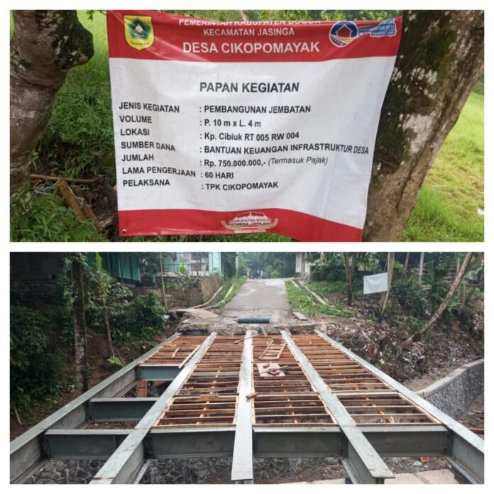 Bogor | LintasUpdate – Pembangunan jembatan di wilayah pedesaan kembali menjadi sorotan. Proyek pembangunan Jembatan di Desa Cikopomayak, Kecamatan Jasinga, Kabupaten Bogor, yang dibiayai melalui Bantuan Keuangan Infrastruktur Desa senilai Rp 750 juta, ditengarai tidak melibatkan konsultan perencana teknis, padahal konstruksi jembatan termasuk infrastruktur dengan risiko tinggi.