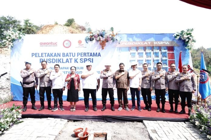 Purwakarta | LintasUpdate – Kapolri Jenderal Polisi Drs. Listyo Sigit Prabowo, M.Si melaksanakan kegiatan peletakan batu pertama pembangunan gedung Pusdiklat Konfederasi Serikat Pekerja Seluruh Asean Trade Union Council (KSPSI ATUC) di Jln. Raya Waduk Jatiluhur Kp. Sukahurip RT 008 RW 005 Desa Jatiluhur Kec. Jatiluhur Kab. Purwakarta. Rabu (7/08/2024).