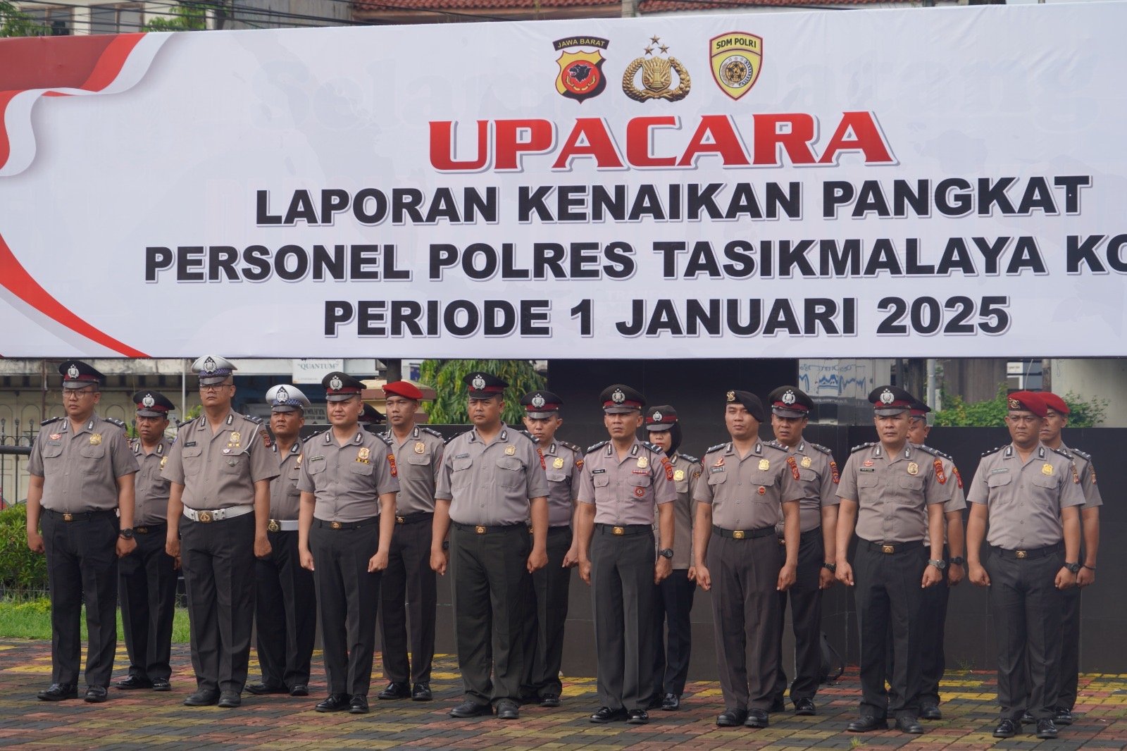 Selain itu, satu personel Polres Tasikmalaya Kota mendapatkan penghargaan pengabdian dengan kenaikan pangkat dari Aiptu ke Ipda.