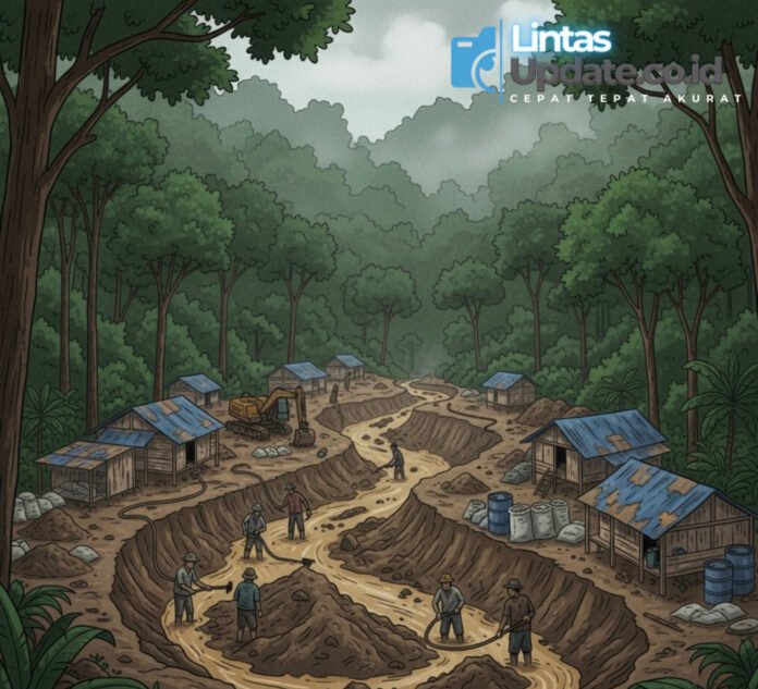 Bogor | LintasUpdate – Aktivitas penambangan emas ilegal di kawasan Taman Nasional Gunung Halimun Salak (TNGHS) terus menjadi ancaman serius bagi kelestarian lingkungan. Berdasarkan penelusuran citra satelit dan laporan warga, kawasan konservasi ini telah dikepung oleh aktivitas tambang liar sejak dekade 1990-an dan hingga kini belum sepenuhnya tertangani. Sabtu (25/10/2025).