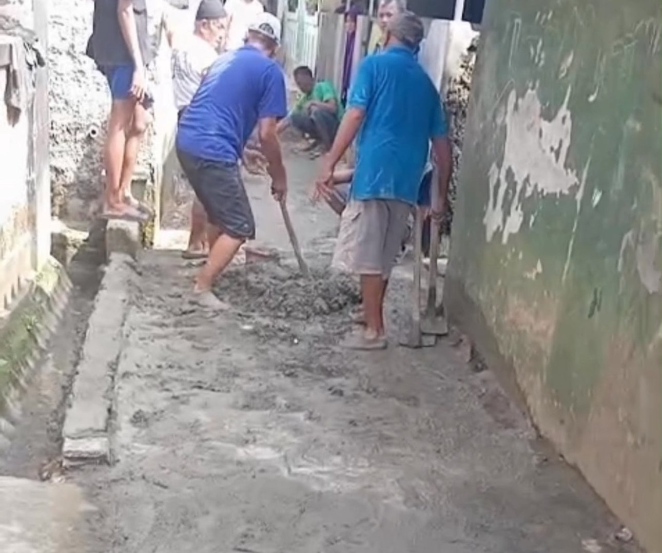 Warga dengan antusias turun langsung memperbaiki jalan-jalan di gang yang sudah rusak parah. Aksi gotong royong ini menjadi bukti nyata kekompakan dan kepedulian masyarakat terhadap lingkungan mereka.