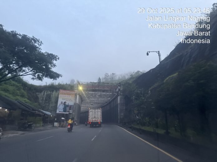 Bandung | LintasUpdate – 29 Oktober 2025 Aktivitas lalu lintas di Jalan Lingkar Nagreg, Kabupaten Bandung, Jawa Barat, pada Rabu (29/10) pagi terpantau lancar dan tertib. Pantauan di lokasi sekitar pukul 05.20 WIB, sejumlah kendaraan besar seperti truk dan bus melintas dengan kecepatan normal, diikuti kendaraan pribadi dan sepeda motor.