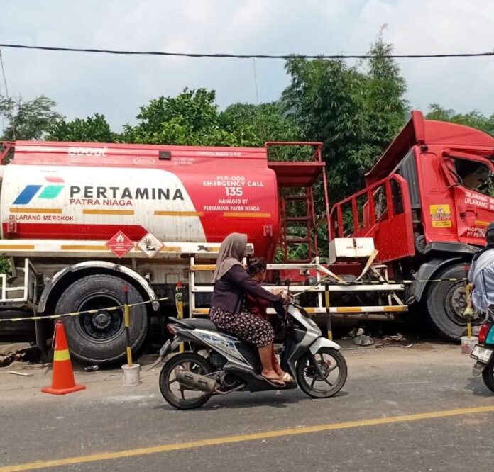 Menurut informasi awal di lokasi kejadian, salah satu kendaraan yang terlibat adalah sebuah truk tangki Pertamina.