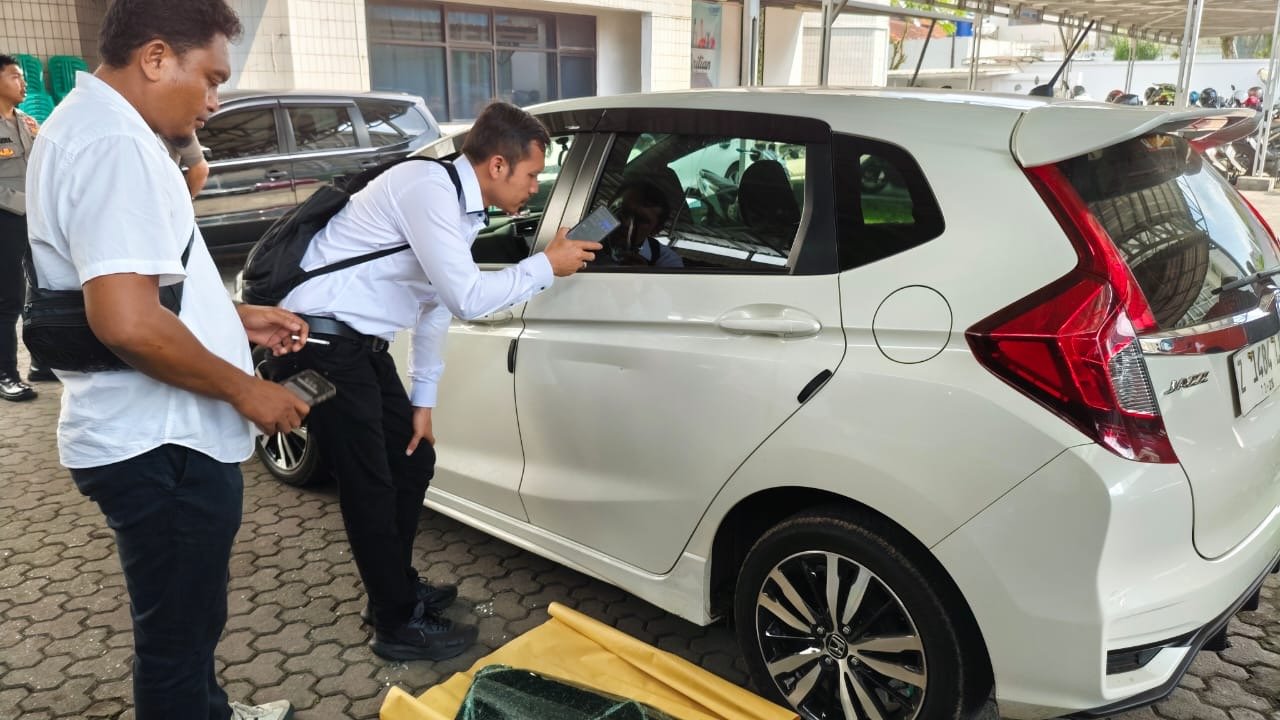 “Menurut keterangan korban, dia sempat pergi ke depan bank dengan maksud membeli kopi, dan saat kembali kondiai kaca mobil sebelah kiri sudah pecah,” jelasnya