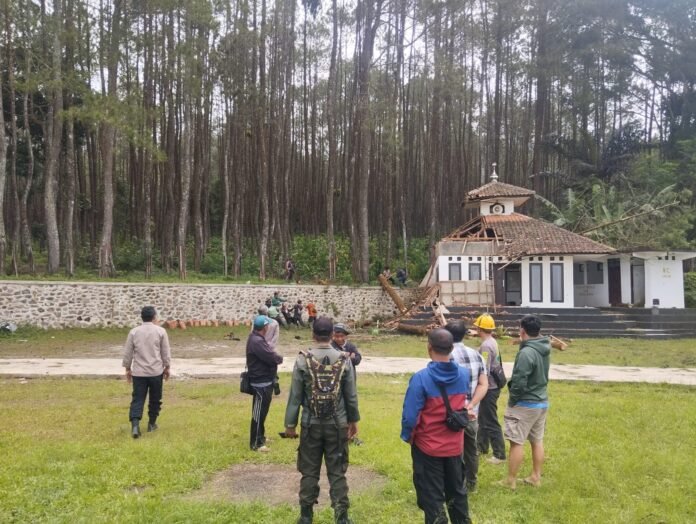 Tasikmalaya | LintasUpdate – 30 Januari 2025 Kapolsek Cisayong, IPTU Hasan Basri, S.E., bersama jajaran, meninjau langsung lokasi kejadian pohon tumbang yang menimpa sebuah mushola di Kampung Cigorowong, RT 2 RW 1, Desa Sukamukti, Kecamatan Cisayong, Kabupaten Tasikmalaya.