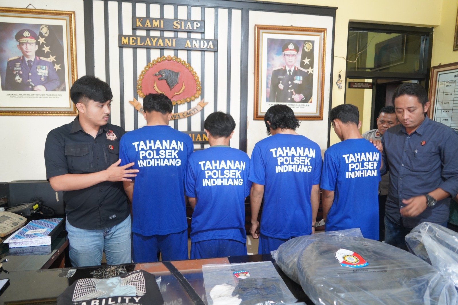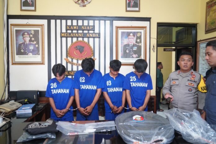 Empat tersangka berinisial RM (19), DK (18), RA (21) dan HK (20) berhasil diringkus tim gabungan dari Unit Reskrim Polsek Indihiang, Polsek Tawang, Polsek Mangkubumi, Polsek Manonjaya berserta Resmob Satreskrim Polres Tasikmalaya Kota.