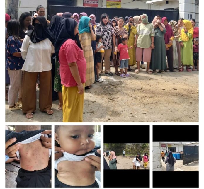 “Bau menyengat sangat mengganggu, banyak warga mengalami gatal-gatal terutama pada bayi serta orang dewasa dengan batuk berkepanjangan, kami menduga ini akibat pengelolaan limbah B3 yang tidak sesuai aturan.