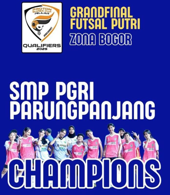 Bogor l LintasUpdate – Sejarah baru tercipta di lapangan futsal Pusbang Dishub Zona Bogor. Tim futsal putri SMP PGRI Parungpanjang tampil sebagai juara Grand Final Futsal Putri PROTON Pelajar Jawa Barat Qualifiers Zona Bogor 2025 dengan rekor nyaris tak masuk akal 30 gol tanpa sekalipun kebobolan, Jumat (08/08/2025.
