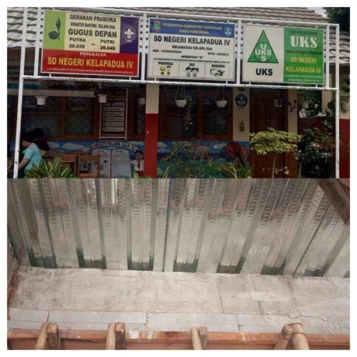 Tangerang l Lintasupdate – Pembangunan Ruang Kelas Baru (RKB) SDN Kelapa Dua IV, Kecamatan Kelapa Dua, Kabupaten Tangerang yang dilaksanakan oleh CV Bantala Maruga Baswara diduga hampir nyaris roboh. Senin, (16/06/2025)