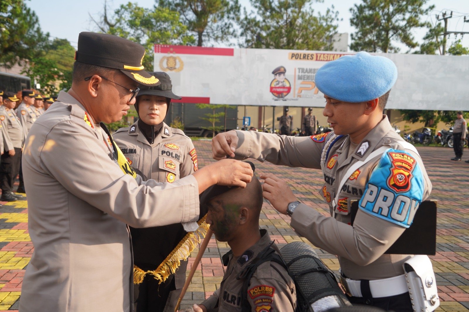 Polres Tasik Kota | LintasUpdate – Sebanyak 20 Bintara Remaja angkatan 51 mengikuti tradisi pembaretan Kamis 17 Oktober 2024 Pagi.