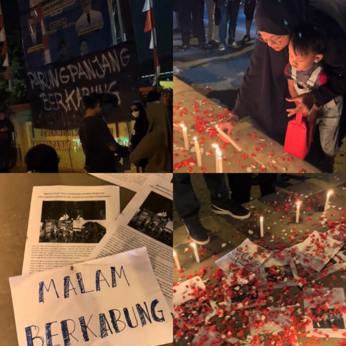Bogor | LintasUpdate – Pada Minggu malam, 1 Juni 2025, warga Parungpanjang, Kabupaten Bogor, menggelar aksi solidaritas dengan menyalakan lilin dan doa bersama untuk mengenang korban kecelakaan truk tambang yang terjadi sehari sebelumnya. Aksi ini berlangsung di depan Kantor Kecamatan Parungpanjang mulai pukul 19.00 WIB, dihadiri oleh masyarakat dari berbagai elemen yang mengenakan pakaian hitam, menyalakan lilin, menabur bunga, dan membentangkan spanduk bertuliskan “Parungpanjang Berkabung”.